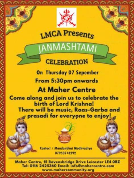 Shree Krishna – Janmashtami will be celebrated on Thursday 7 September 2023 from 5:30pm onwards at Maher Community Centre Mandir.